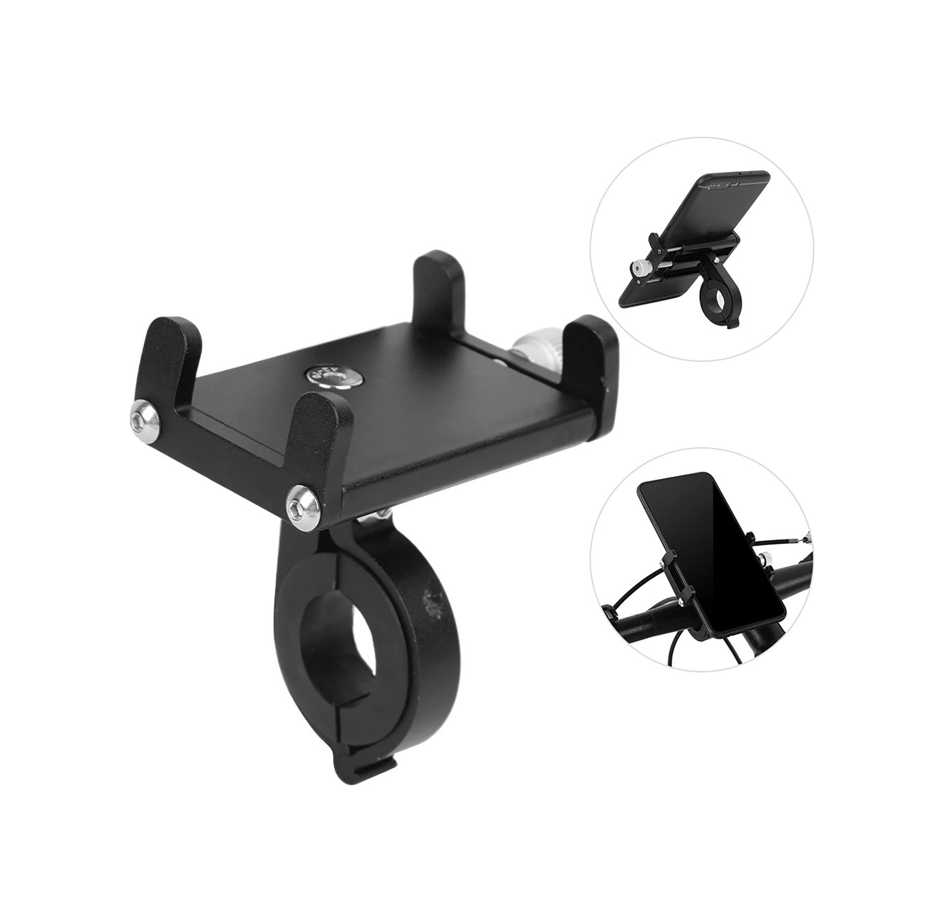 Vkemall Alüminyum Bisiklet Telefon Tutucu - Mekanik Kilitleme, 360 Döner, 3.5-6.5 İnç Telefonlar İçin, 18-31mm Direk Uyumlu, Siyah Siyah