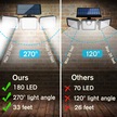 Vkemall Dış Mekan Güneş Enerjili 180 Led İçinimli Duvar Lambası, Üç Ayaçlı Dönüşümlü, Ip65 Su Geçirmez, 400lm, Işık Kontrolüyle Aydınlatma