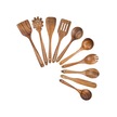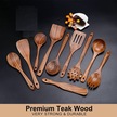 Vkemall Doğal Teak Ahşap Mutfak Gereçleri Seti - 10 Parça, El Yapımı, Toksiksiz, Anti Yapışkan, Mutfak Gerekli Malzeme Kahverengi