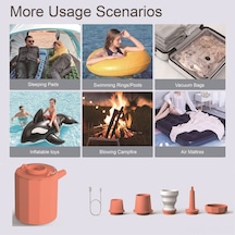 Vkemall Portatif Kablosuz Hava Pompası, 5 Uç İle Çadır Aydınlatma Sos Lambası, Hava Yatağı, Yüzme Halkası, Vakum Depolarma, 1600mah Batarya, Turuncu