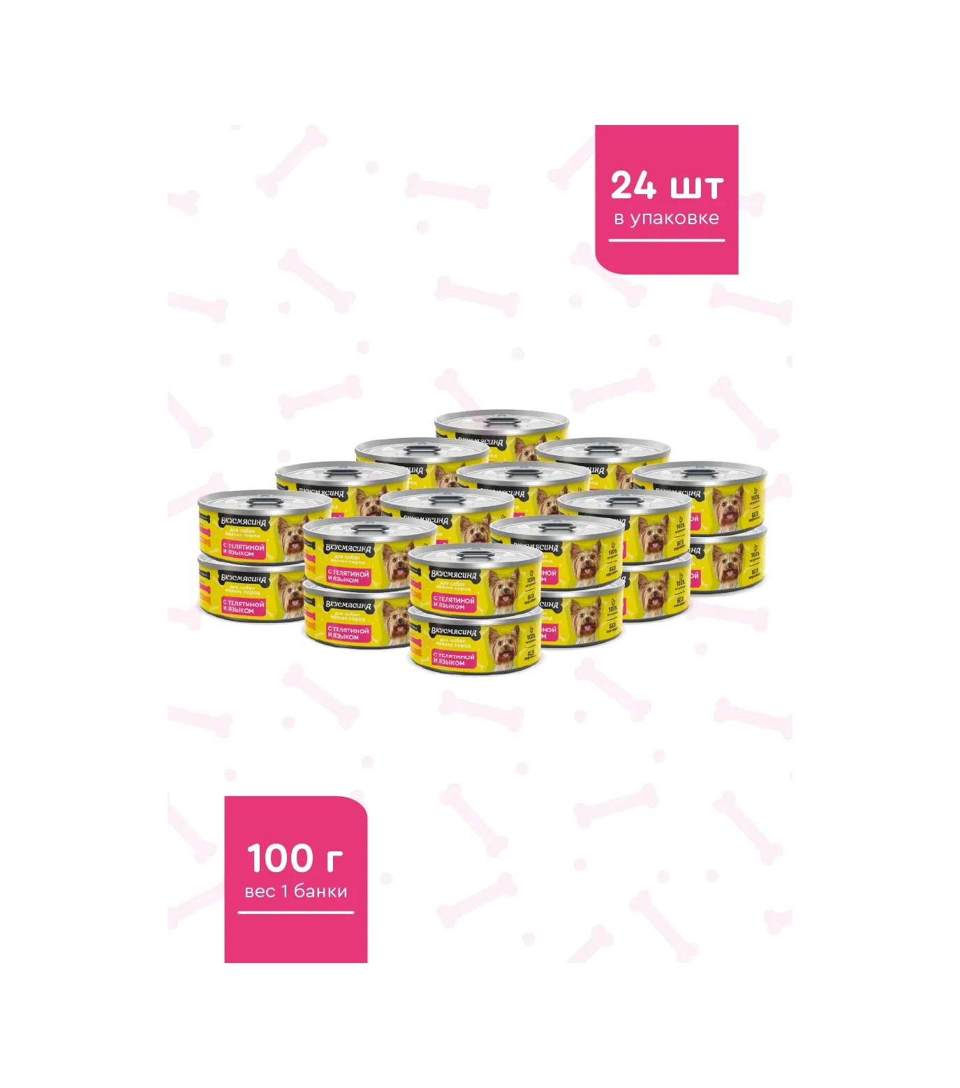 Vkusmasina Küçük Irk Köpekler İçin Yaş Mama Dana Eti + Dil 100g 24 Adet 222879088