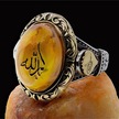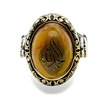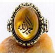Vog Elhamdülillah Yazılı Tuğralı Sıkma Kehribar Taşlı 925 Ayar Gümüş Erkek Yüzük