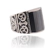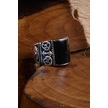 Vog Siyah Oniks Taşlı Yanı İşlemeli 925 Ayar Erkek Gümüş Yüzük