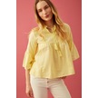 Volanlı Yaka Bağlamalı Sarı Bluz Sari