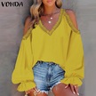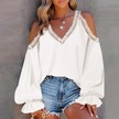 Vonda Kadın Vintage V Yaka Fener Uzun Kollu Omuzdan Bağlamalı Dantel Bluzlar Beyaz
