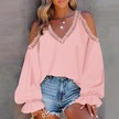 Vonda Kadın Vintage V Yaka Fener Uzun Kollu Omuzdan Bağlamalı Dantel Bluzlar Pembe