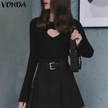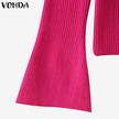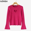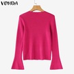 Vonda Kadın Vintage Yuvarlak Yaka Uzun Kollu Dar Kazak Kazaklar Beyaz