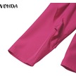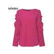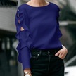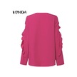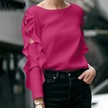 Vonda Kadın Yaz Modası Yuvarlak Yaka Puf Uzun Kollu Bluz Mavi
