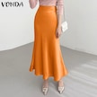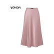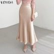 Vonda Kadın Yaz Yüksek Bel Düz Renk Bol Kloş Etek Haki