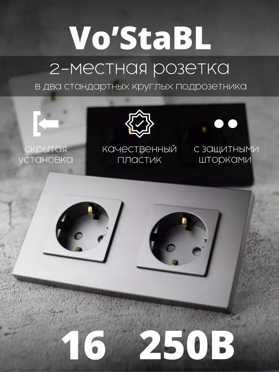 Vo'stabl Çiftli, İki Kişilik Gri Priz, Topraklama, Koruyucu Kapaklar. 145892878 102