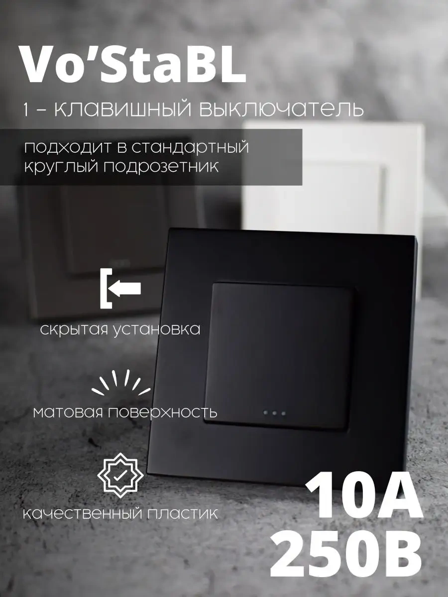 Vo'stabl Siyah Tek Tuşlu Aydınlatmasız Işık Anahtarı 153855205