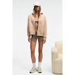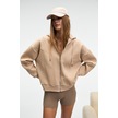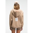 VYSELLE Kadın Önü Kesikli Metal Fermuarlı Kapüşonlu Etiket Detaylı Oversize Vizon Sweatshirt