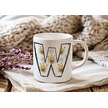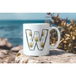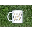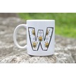 W Harfi Arı Desenli Kupa - Sevimli Hayvan Temalı Kişiye Özel Kahve Kupası - Şans Kupası Beyaz