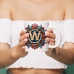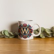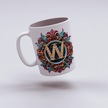 W Harfi Boho Bardak, Renkli Özel Tasarım Hediyelik Harfli Kupa, 330ml Porselen Beyaz