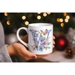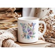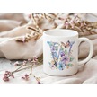 W Harfi Çiçekli Kupa Bardak - Soft Renk Çiçek Ve Kelebek Desenli Zarif Kahve Kupası - Bohem Beyaz