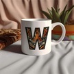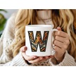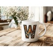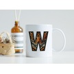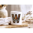 W Harfi Kaplan Figürlü Nakış Desenli Kupa Bardak - Kişiye Özel Vahşi Hayvan Desenli Kupa - Hediye Beyaz
