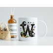 W Harfli Halloween Kedili Figür Kupa Bardak - Şapkalı Ve Kazanlı İsme Özel Kupa - Hediye Beyaz