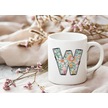 W Harfli Pastel Çiçek Desenli Kahve Kupası - Kişiye Özel Çiçekler Koleksiyonu Bardak - Hediye Beyaz