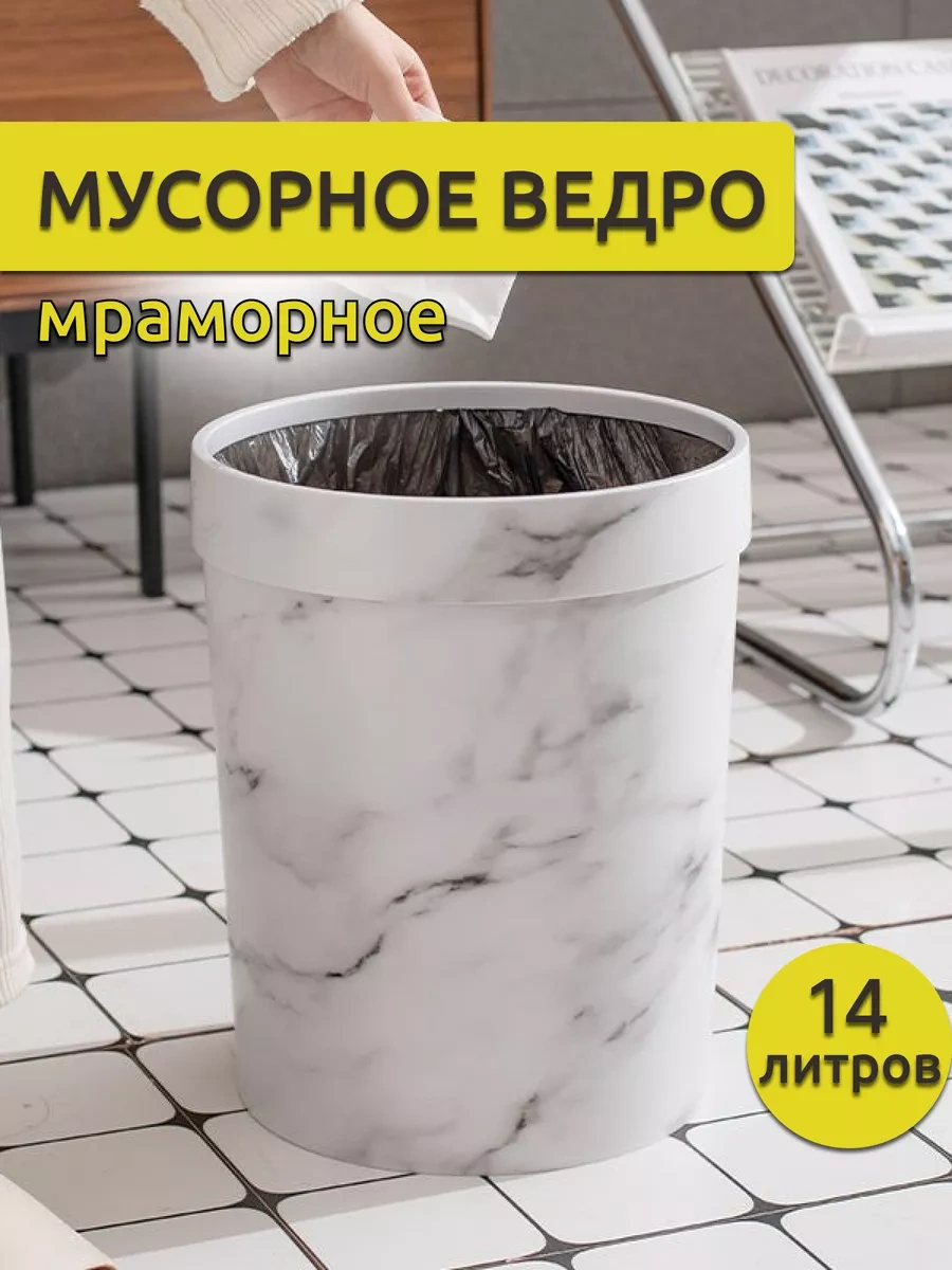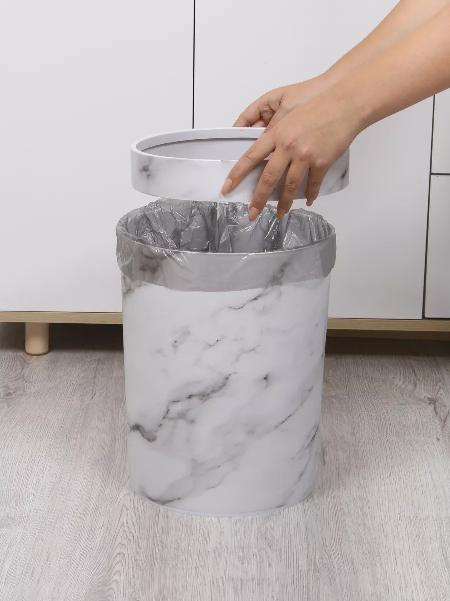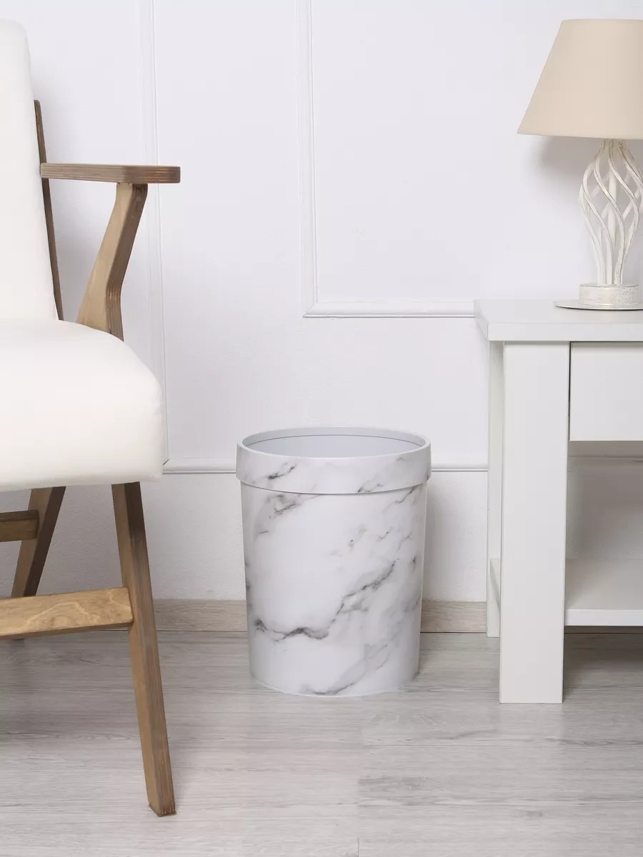 Wallard Mermer Desenli 14 Litrelik Çöp Kovası 229400139 Beyaz