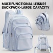 Wangxi Siyah Çok Bölmeli Laptop Sırt Çantası Büyük Kapasiteli Dayanıklı Nylon Çerçeve Ayarlanabilir Askılı Çok Cepli Seyahat İş Çantası Şık Açık Mavi Siyah Tasarım Fermuarlı Kapatma Siyah