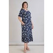 Wearon Kadın Dora Büyük Beden Volanlı Beyaz Papatyalar Lacivert Elbise Lacivert