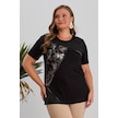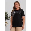 Wearon Kadın Yezra Deri Varak Taş Detaylı Penye Siyah Tişört Siyah