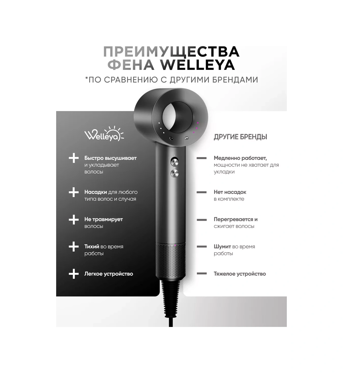 Welleya Profesyonel Küçük Saç Kurutma Makinesi, 5'i 1 Arada Aksesuarlı 166068077