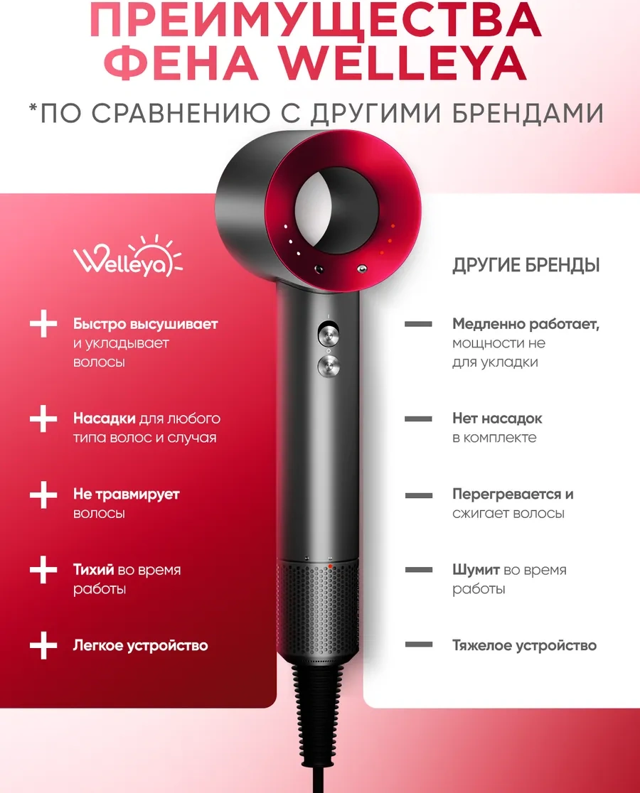 Welleya Profesyonel Küçük Saç Kurutma Makinesi, 5'i 1 Arada Aksesuarlı 360536794