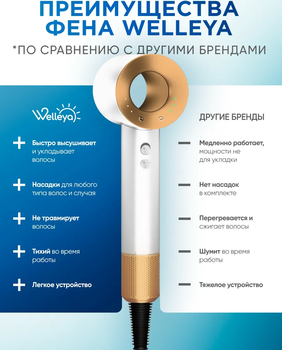 Welleya Profesyonel Küçük Saç Kurutma Makinesi, 5'i 1 Arada Aksesuarlı 360536797