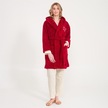 Welsoft Kapüşonlu Peluş Kadın Sabahlık Bordo