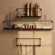 Dekoratif Tel Kafes Tasarımlı 3 Bölmeli Raf - Çok Amaçlı Tel Dolap Siyah