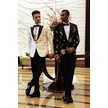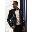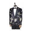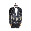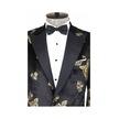 Wessi Gold Çiçek Desenli Parlak Siyah Erkek Smokin Ceket Siyah