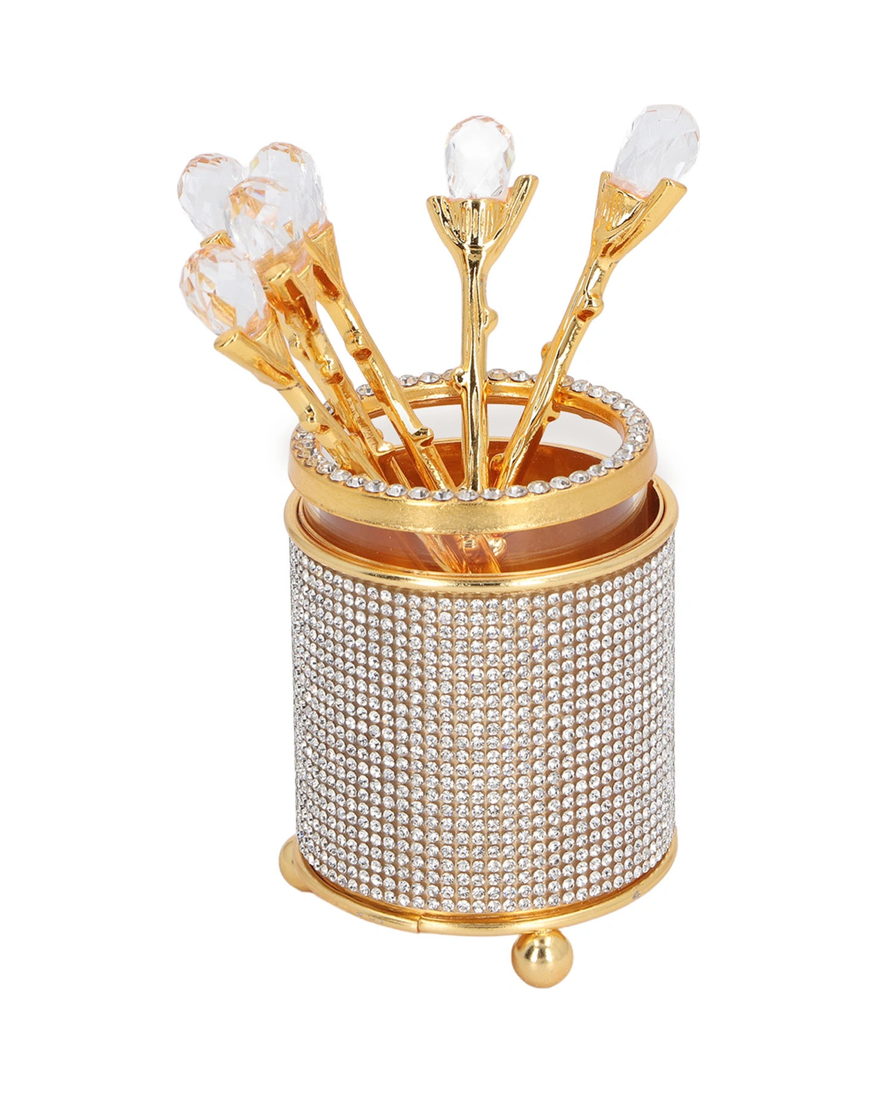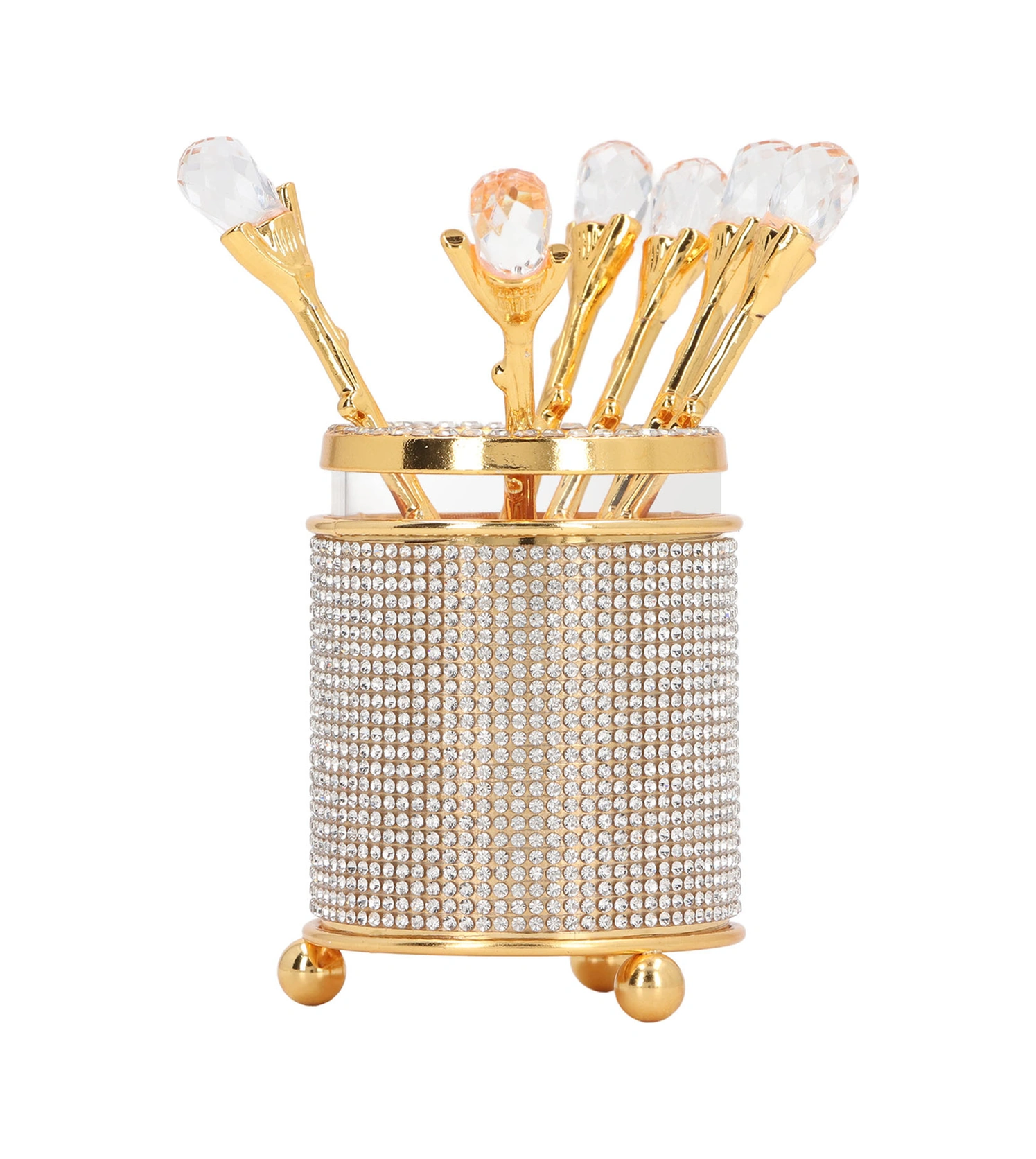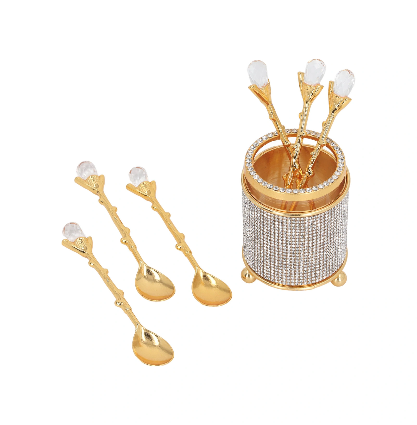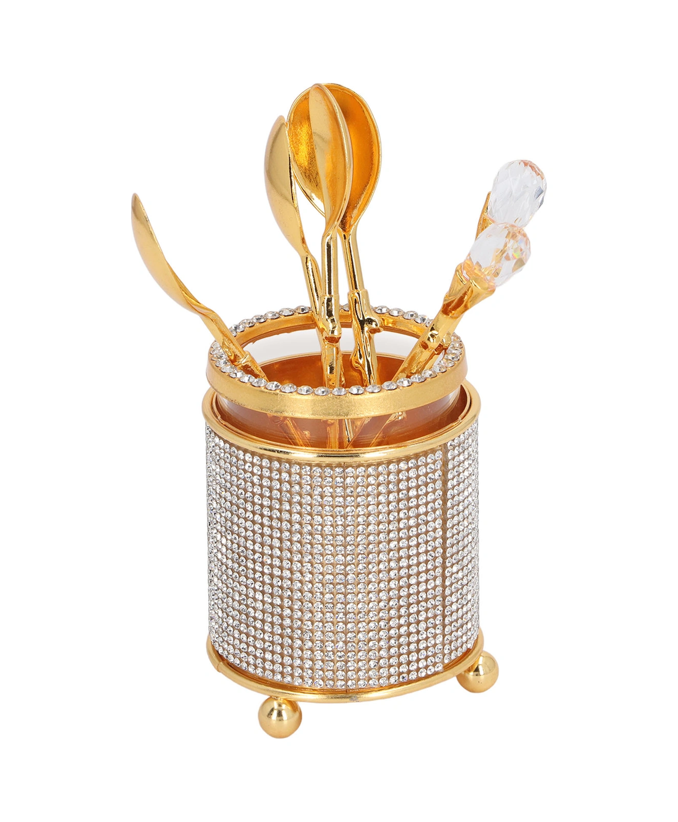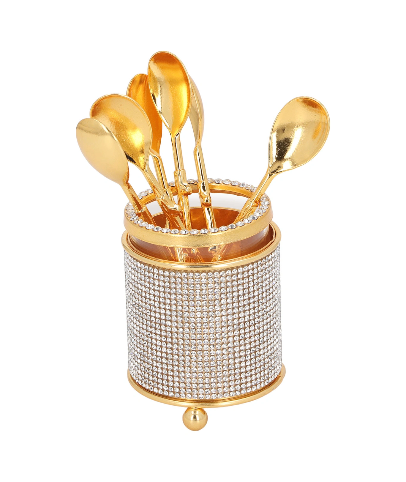 Wezone Altın Renkli 6 Adet Çay/kahve Kaşığı, Zirkonlu Cam Depolama Kova Seti - Dondurma, Tatlı, Şeker Karıştırma İçin Pratik Tabak Takımı Diğer