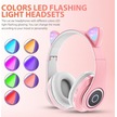 Wezone Kedi Kulaklıklı Led Işıklı Hi-fi Stereo Bluetooth 5.0 Kulaklık, Kablolu/kablosuz, Fm/tf Kart Desteği, Çocuklar/gençler İçin Pembe
