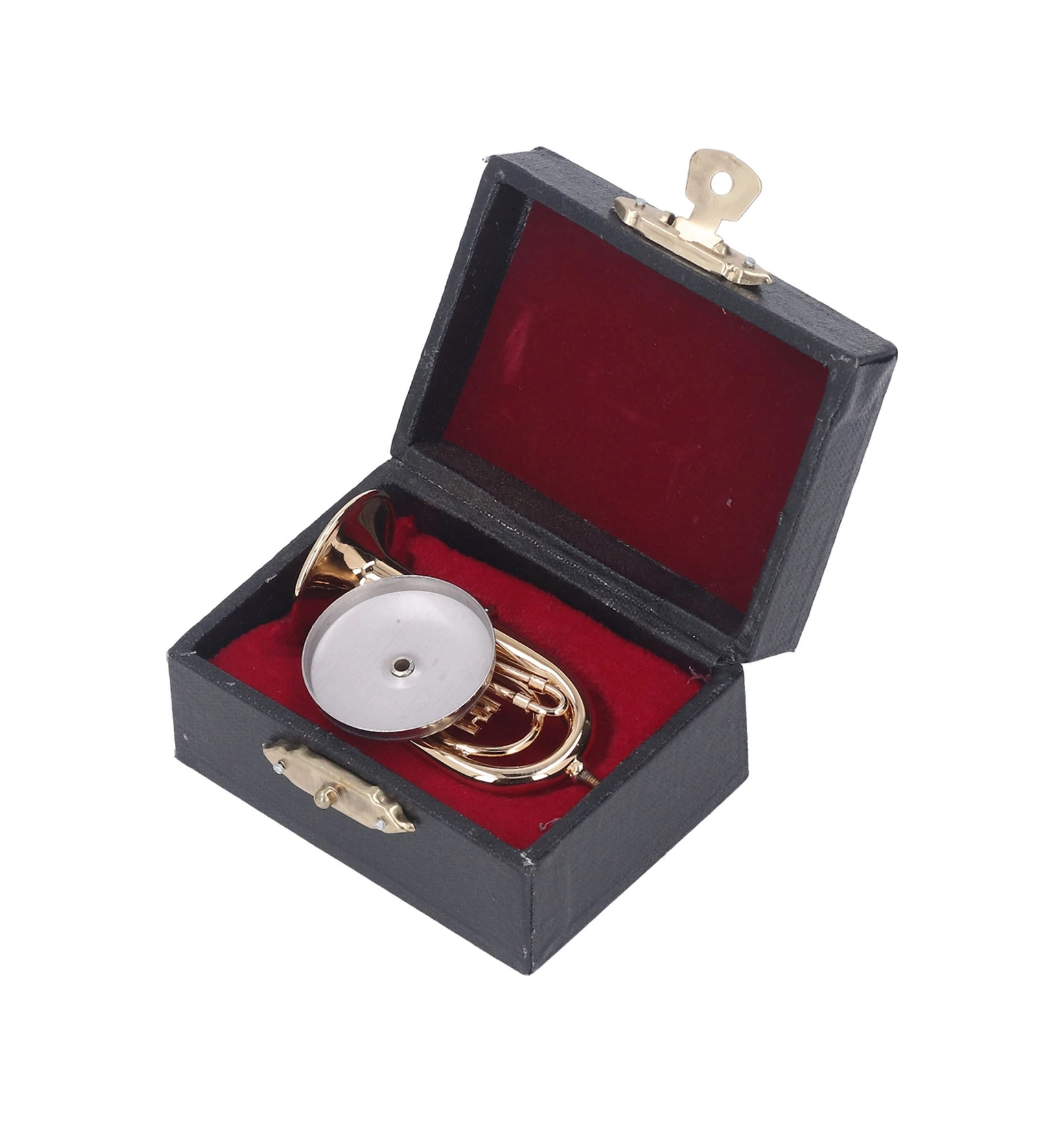 Wezone Minyatür Altın Kaplama Pirinç Tuba Modeli - Müzik Severlere Hediye Masaüstü Dekorasyonu Kutu Ve Taban İle 6 Cm