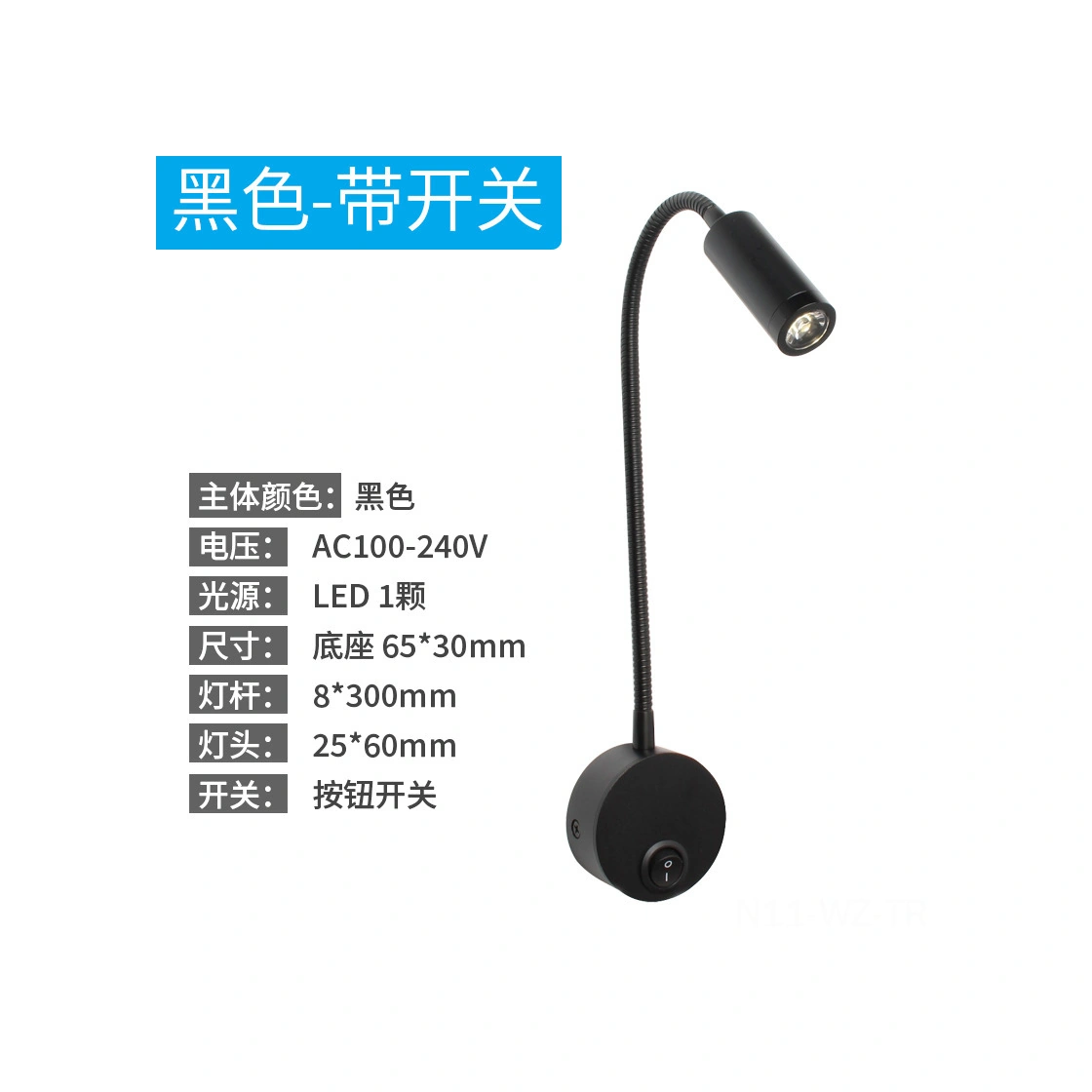 Wezone Siyah 3w Led Boyunlu Duvar Lambası, Islak Beyaz Işık, Okuma Için, Otel/yatak Odası, Anahtarlı Siyah