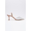 Whena Bej İncili Şeffaf Kadın Topuklu Ayakkabı Bej