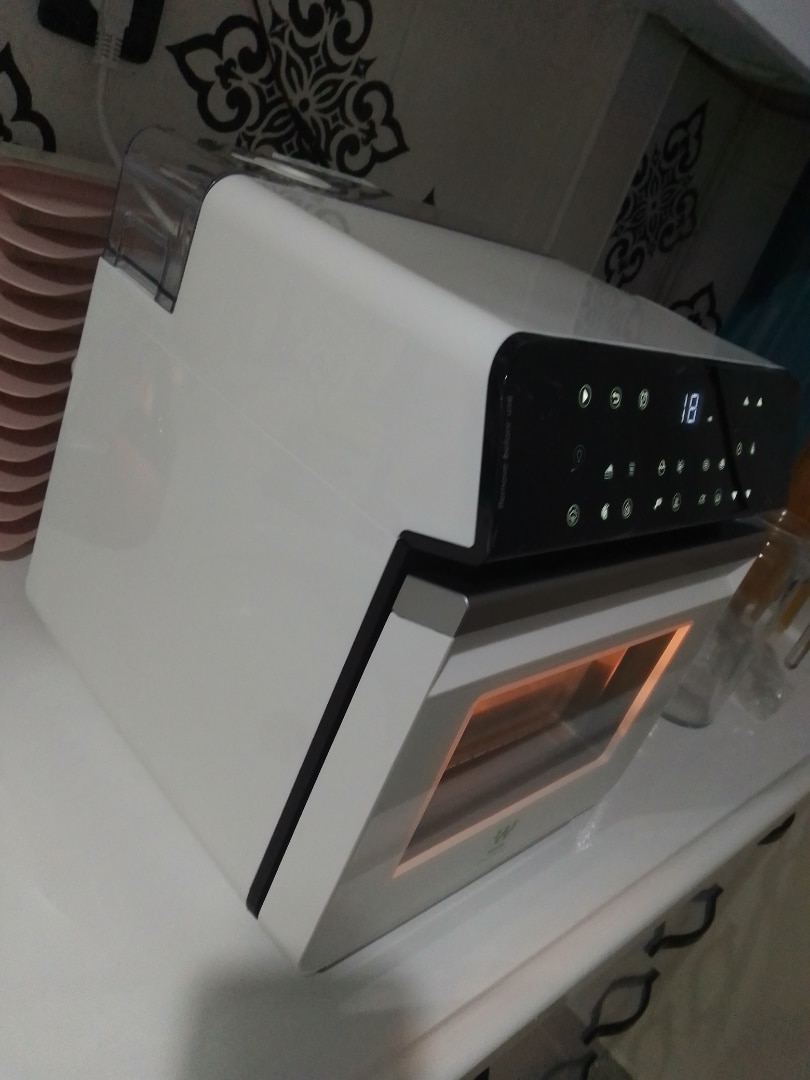 ürünü alacak olanlara biraz bahsetmek istiyorum ürün özellikleri çok buharlı fırın gibi düşünebilirsiniz bir tık mikrodalga havasida veriyor ilk başta yiyecek denemedim önce buharlı temizleme özelliğini kullandım parçaları yıkadım güzelce sonrasında denedim 15 20 dk gibi kısa sürede pişirdi lezzetide yerindeydi ızgara kısmını kullandım o kısımda çok ses çıkarıyor ona anlam veremedim mikro dalga sesi gibi onun dışında şuan iyi bence pratik arkada baca var çalıştırırken buhar veriyor