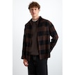 Wıldy Erkek Pamuk-polyester Gömlek Yaka Relaxed Oduncu Kahverengi Gömlek