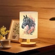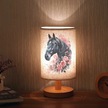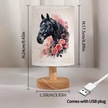 Willowhaven 24x10 Kara At Baskılı Ahşap Renk Masa Lambası Led Işık Usb Şarjlı Yatak Başı Lamba Hediye Füme