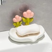 Willowhaven Beyaz Oval Plastik Çiçek Desenli Kendinden Süzülmeli 4 Mevsim Sabunluk Beyaz