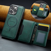 Willowhaven İphone Uyumlu 13 Pro Max Yeşil Manyetik Cüzdan Kılıfı 8 Kart Bölmeli Çıkarılabilir Şarj Standlı Kılıf