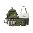Wizmy Yeni Beş Parça Öğrenci Çantası Kadın Renk Kontrast Öğrenci Çantası Aqds6ı Koyu Yeşil