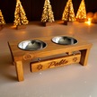 Woodesk Pati Doğal Ahşap Özel İsim İşlemeli Mama Ve Su Kabı