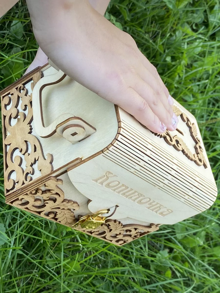Woodnsa Kilitli Ahşap Sandık Kumbarası 25941862