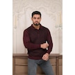 Woolen World Polo Yaka Armürlü Yünlü Erkek Triko Kazak Bordo