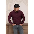 Woolen World Polo Yaka Slimfit Desenli Yünlü Erkek Triko Kazak Bordo