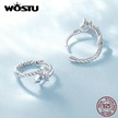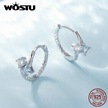 Wostu 925 Ayar Gümüş Narin Mavi Ve Beyaz Kübik Zirkonya Büküm Hoop Küpe Kadınlar İçin Takı Hediye