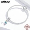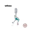 Wostu 925 Ayar Gümüş Pembe Cz Kokteyl Şarap Bardağı Dangle Charm Kolye Dıy Bilezik Takı Gümüş