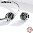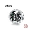 Wostu 925 Ayar Gümüş Siyah Kuğu Boncuk Zirkon Yuvarlak Takılar Fit Bilezik Kolye Takı Gümüş